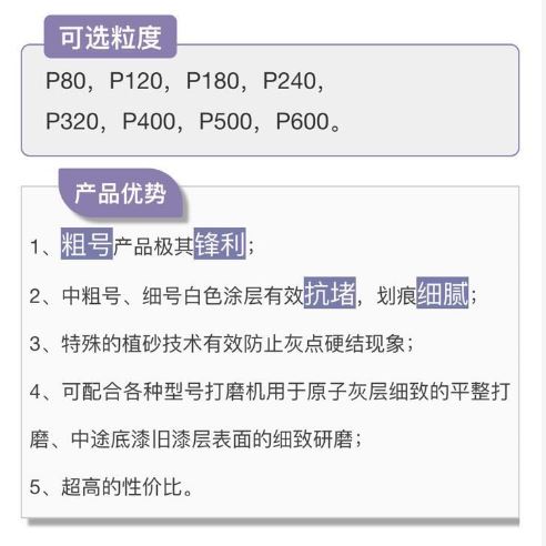 采用特殊的基紙和磨料,超前的技術(shù)使產(chǎn)品具有全新外觀,具有高效的效率及超長的壽命,主要應(yīng)用于汽修后市場,油漆、膩子領(lǐng)域及玻璃鋼的研磨,具有豐富的擴(kuò)展性。